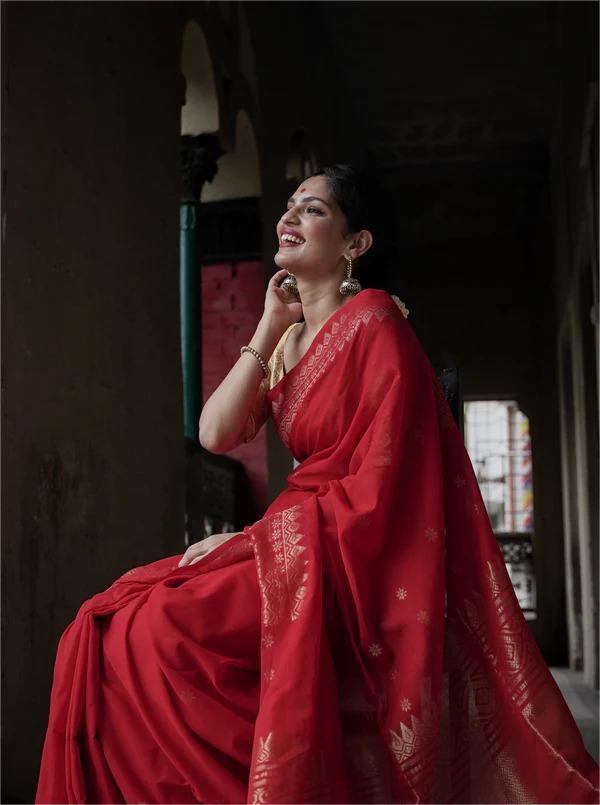 Reviews for MF 1950 RED BANARASI SOFT LICHI SILK SAREE
