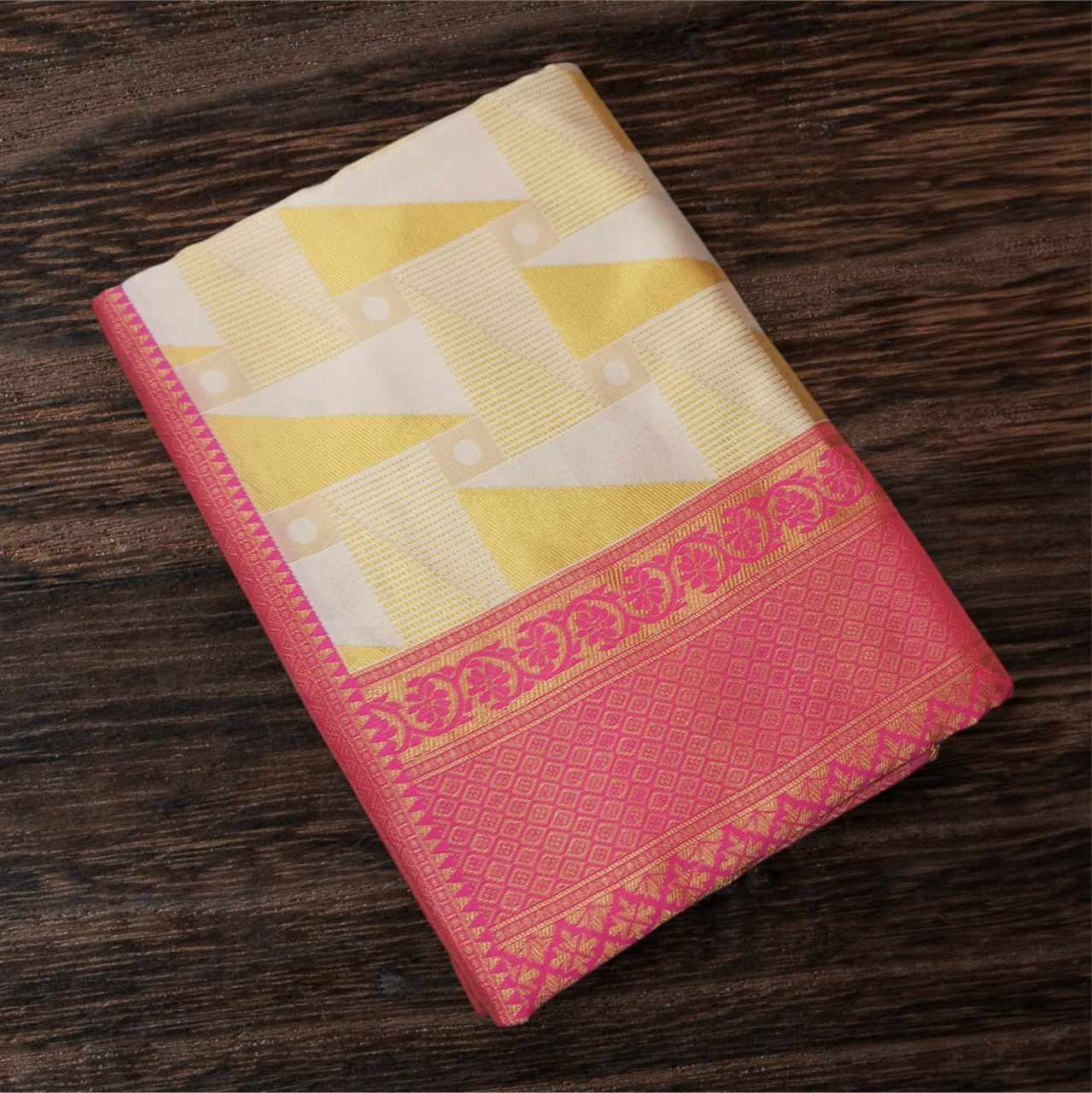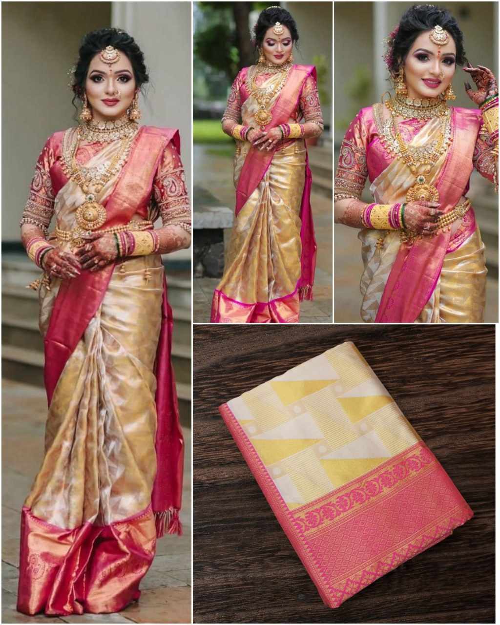 The saree features a rich and beautifully woven pallu that adds a royal touch. Intricate jacquard work all over the saree enhances its elegance, making it perfect for festive occasions, weddings, and special gatherings.