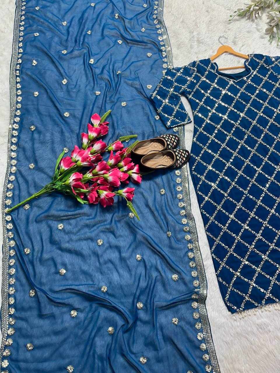 MF 409 New Fancy Embroidered Blue Dress