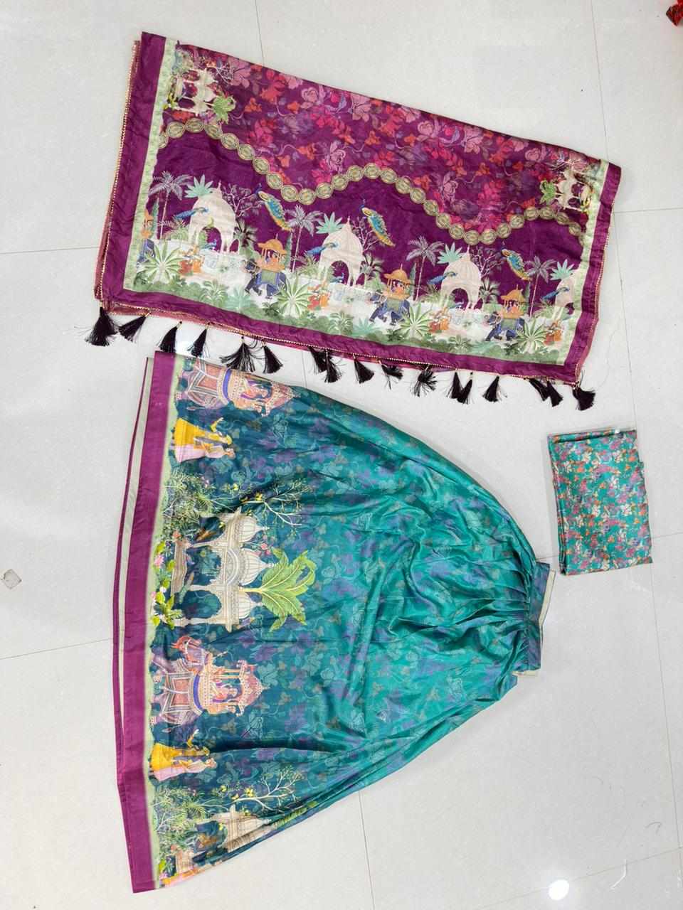 | Name : | PIYU 21-2 Silk Digital Print Rama Color Lehnga |