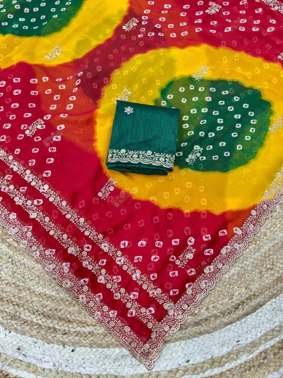 PIYU P1051 LEHERIYA BANDHANI-3 Red Saree