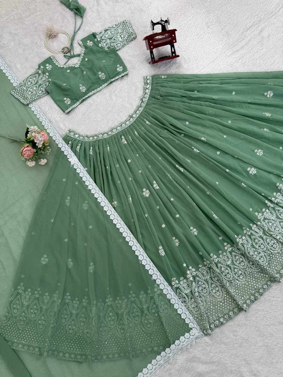 QRC 382 Beautifual Pastel Green Heavy Designer Lehenga