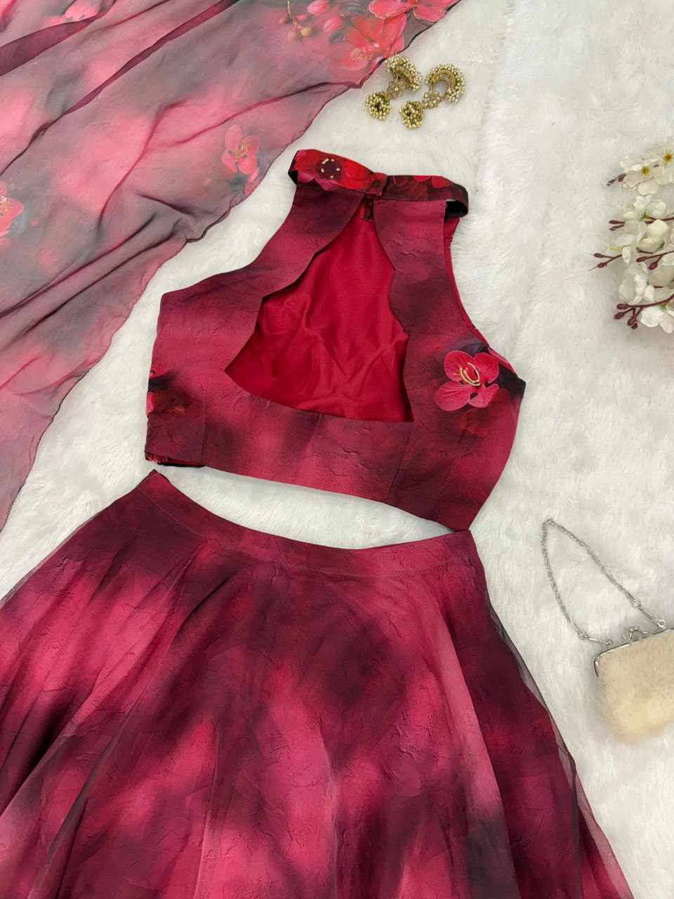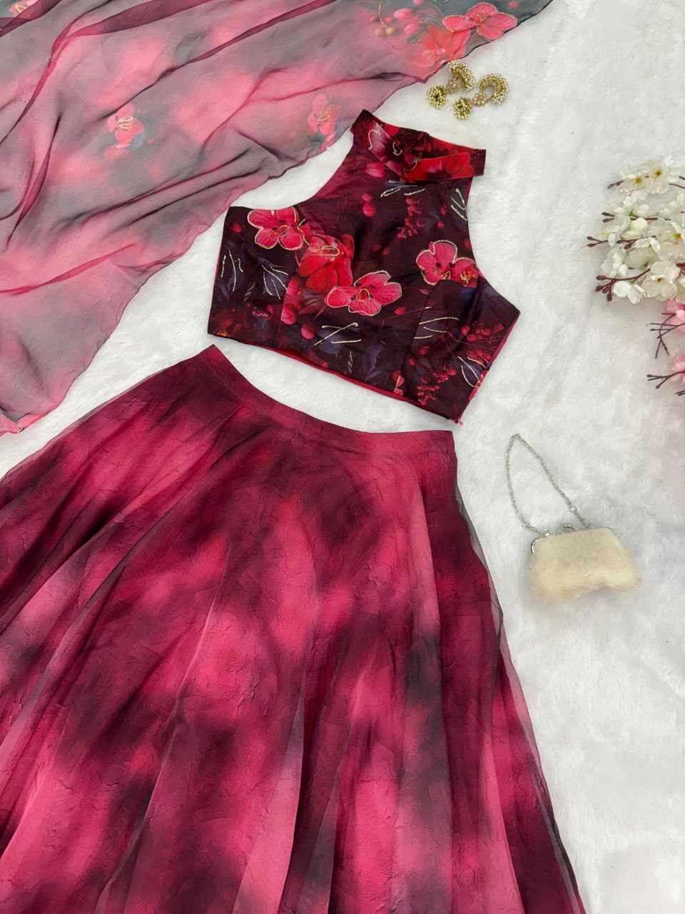 Dupatta – Stylish 2-meter organza printed dupatta with designer lace border.
