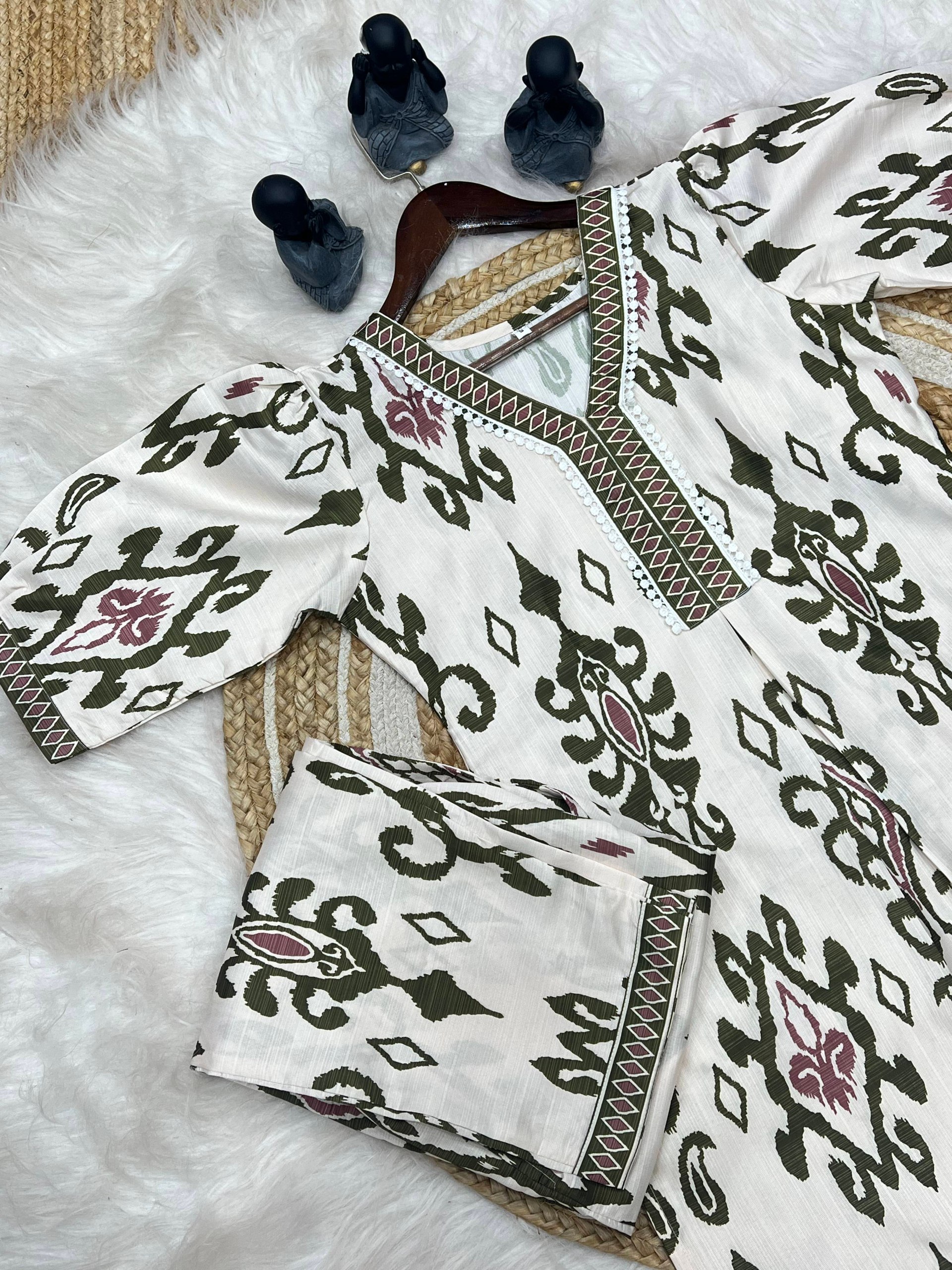 JKWH 997 Pure Fine Cotton Febric Embroidery Work A-line Kurti Set With Pocket